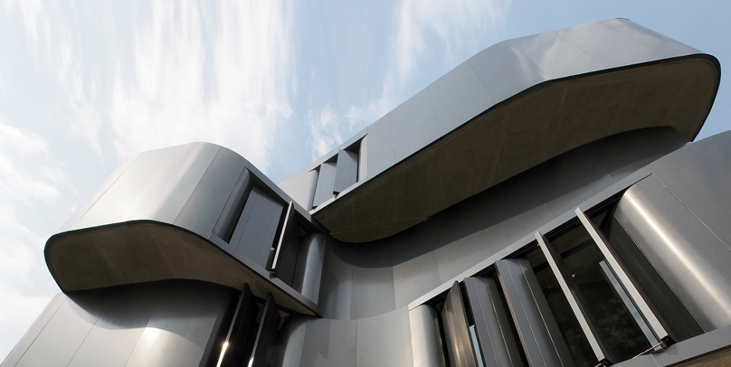 ASWA的辦公室包括4層,總面積為21,528平方英尺(2,000平方米)。一個(gè)開(kāi)放的停車位占據(jù)了一樓,使得建筑物的其余部分似乎從地面升起。在大型結(jié)構(gòu)柱的支撐下,其余三個(gè)層由黑色彎曲“腰帶”纏繞,這些弧線以不規(guī)則的方式堆疊在彼此之上。