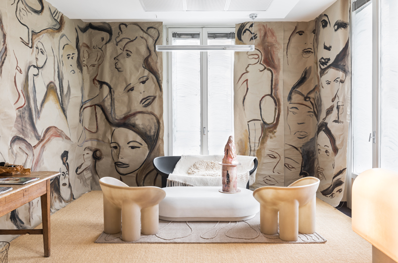 辦公室裝修由toogood為主編辦公室創(chuàng)造的室內(nèi)裝飾,配備著名的“roly-poly”系列家具,頌揚(yáng)開放和包容的概念。辦公室裝修鋒利的邊緣已經(jīng)舍去,取而代之的是溫暖,圓潤(rùn)的沙發(fā)床形狀,堅(jiān)固的椅子和大圓桌,同時(shí)奶油灰泥和粗糙的玻璃纖維協(xié)調(diào)一致。辦公室裝修墻壁上裝飾著手繪畫布,描繪了一個(gè)輪廓和面孔的畫面 - 紀(jì)念53年的標(biāo)志性時(shí)尚意大利封面,突出了雜志從女人到男人的轉(zhuǎn)變 - 而辦公室裝修焦點(diǎn)是設(shè)計(jì)師自己的陶瓷雕塑題為家庭胸圍3號(hào),限量版。