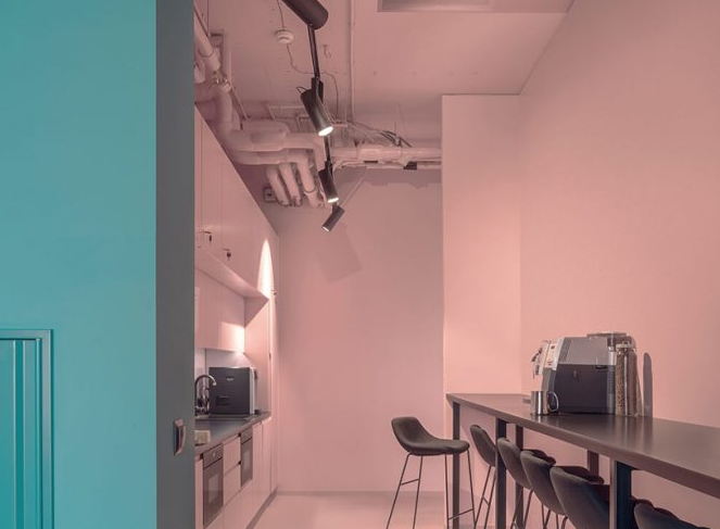 波蘭公司辦公室裝修為了讓一個(gè)流動(dòng)的工作環(huán)境發(fā)揮所有空間線索的作用,建議辦公室裝修再刪除劃分和垂直層次結(jié)構(gòu),并用一個(gè)水平的平等的空間結(jié)構(gòu)取代。創(chuàng)意團(tuán)隊(duì)的所有成員,包括接待員、執(zhí)行助理、設(shè)計(jì)師、平面設(shè)計(jì)師、客戶服務(wù)人員、文案撰寫人和創(chuàng)意總監(jiān),都坐在一張桌子上。