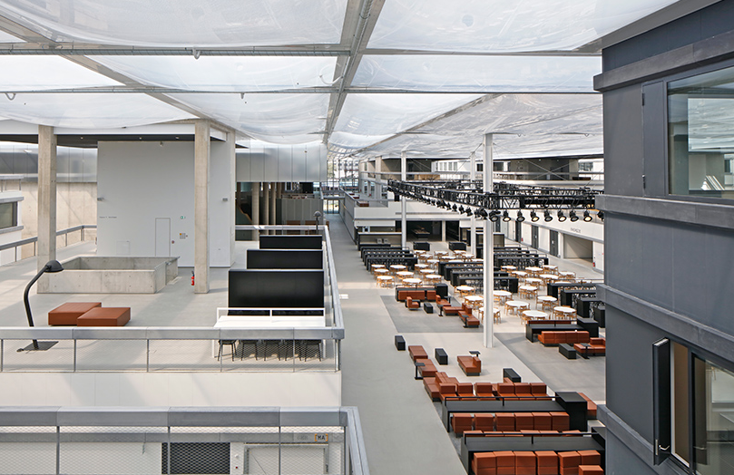 隨著地塊高度的增加,辦公室裝修屋頂露臺(tái)和開(kāi)放的工作空間為學(xué)生提供了開(kāi)放的內(nèi)中庭景觀。巨大的透明屋頂覆蓋著學(xué)校的公共區(qū)域,辦公室裝修允許日光自由進(jìn)入室內(nèi)城市空間。城市校園由一條對(duì)角線街道相交,延伸了連接大學(xué)與周圍校園的公共路線。