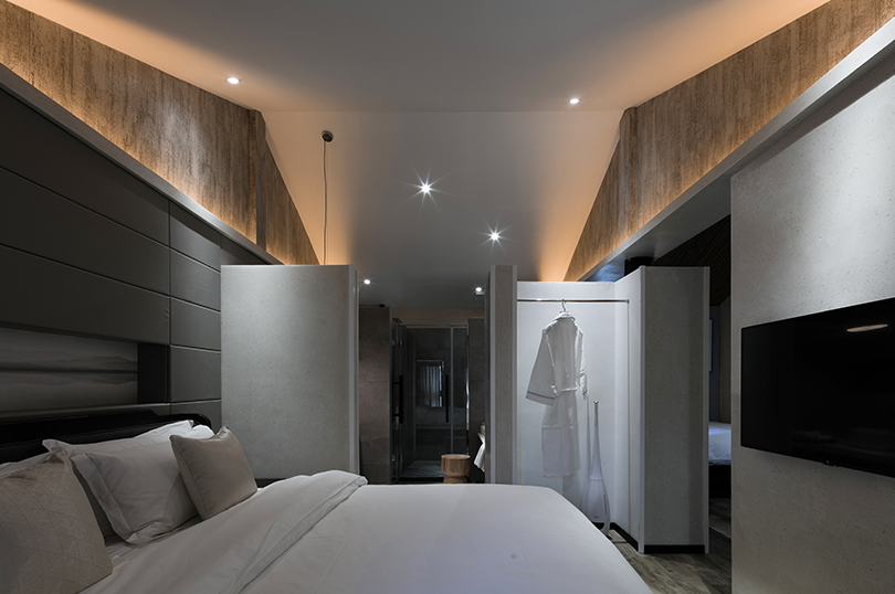 當(dāng)你走上臺(tái)階時(shí),蜿蜒的小徑將你帶到接待室。陰影與水墨山水畫相似,時(shí)間也在這樣的氣氛中緩緩下來(lái)。