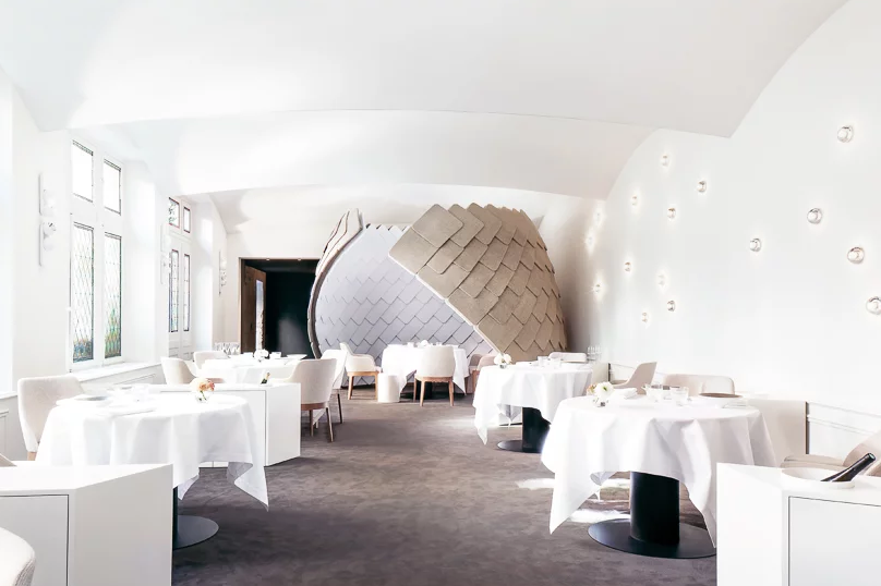 位于法國(guó)科爾馬的阿爾薩斯葡萄酒區(qū)中心,'la maisondestêtes'(或英語(yǔ)中的'the head of heads')是一座歷史悠久的建筑,建于1609年,其名稱(chēng)源自109小頭雕塑,華麗的文藝復(fù)興風(fēng)格的外觀。這座建筑今天是一家擁有兩家餐廳的五星級(jí)酒店,是科爾馬的主要景點(diǎn)之一,面向最近由herzog和de meuron進(jìn)行翻新和擴(kuò)建的無(wú)人博物館。除了現(xiàn)有的小酒館,一家供應(yīng)傳統(tǒng)法國(guó)和阿爾薩斯菜肴的餐廳外,F(xiàn) + F studio的客戶eric girardin還想創(chuàng)建一家新餐廳,提供現(xiàn)代美食,翻新大堂,公共區(qū)域和酒店客房。