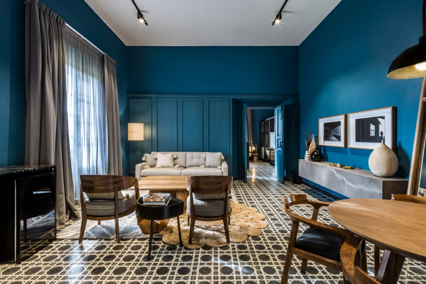 該酒店裝修小組還修復(fù)了建筑物的屋頂平臺(tái)和殖民風(fēng)格的庭院,周圍是灰色的石柱,家里有一個(gè)200年歷史的橡樹樹和一個(gè)巴黎噴泉在1850的時(shí)候栽植的。